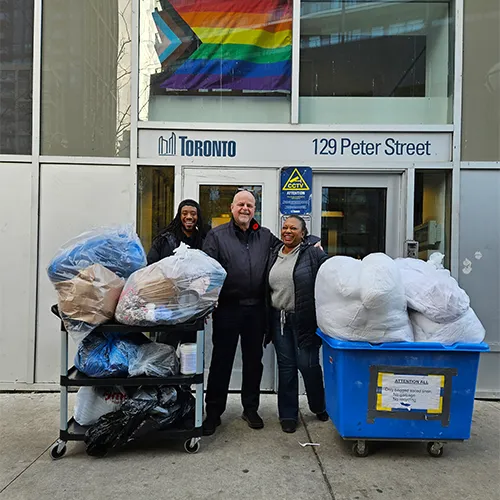 The BIA collects and coordinates member donations for Toronto Shelter and Support Services at 129 Peter Street, and provides opportunities for members to support the community through donations, accommodations, and employment.