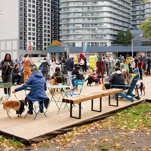 We enhanced Clarence Square Park with new temporary decking, furniture, and an artistic installation that served as a vibrant backdrop complementary to the urban setting, transforming the space into an inviting “outdoor living room” for visitors and residents to enjoy. The space was activated throughout the summer with live music, activities, and community programming. The Summer Music Series featured over 50 local musicians in partnership with Canada’s Music Incubator, bringing weekly performances to the park. We partnered with Knightcap on the Chess in the Park series, offering an opportunity for players of all skill levels to gather, play, and enjoy live music outdoors. Paws in the Park welcomed dog owners and their companions for a festive Halloween costume event with prizes and music, further encouraging social connection and use of the space. Members were also invited to showcase their products and services throughout the season.