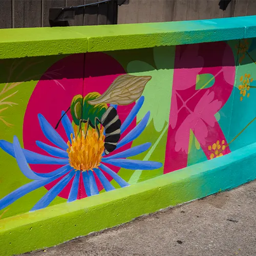 This year, we focused on improvements to the University Avenue Triangle, a gateway space across from Union Station. In collaboration with the Fairmont Royal York and OCAD University, we launched Phase 1 of a new pollinator garden and mural to support urban biodiversity and enhance the public realm. Supported by the City of Toronto’s PollinateTO Grant, this first phase included planting over 30 varieties of native species to support more than 80 pollinator species, along with a new mural by artist Julia Prajza. Additional enhancements are planned for the coming year, including fencing, permanent interpretive signage, and further improvements to the site.